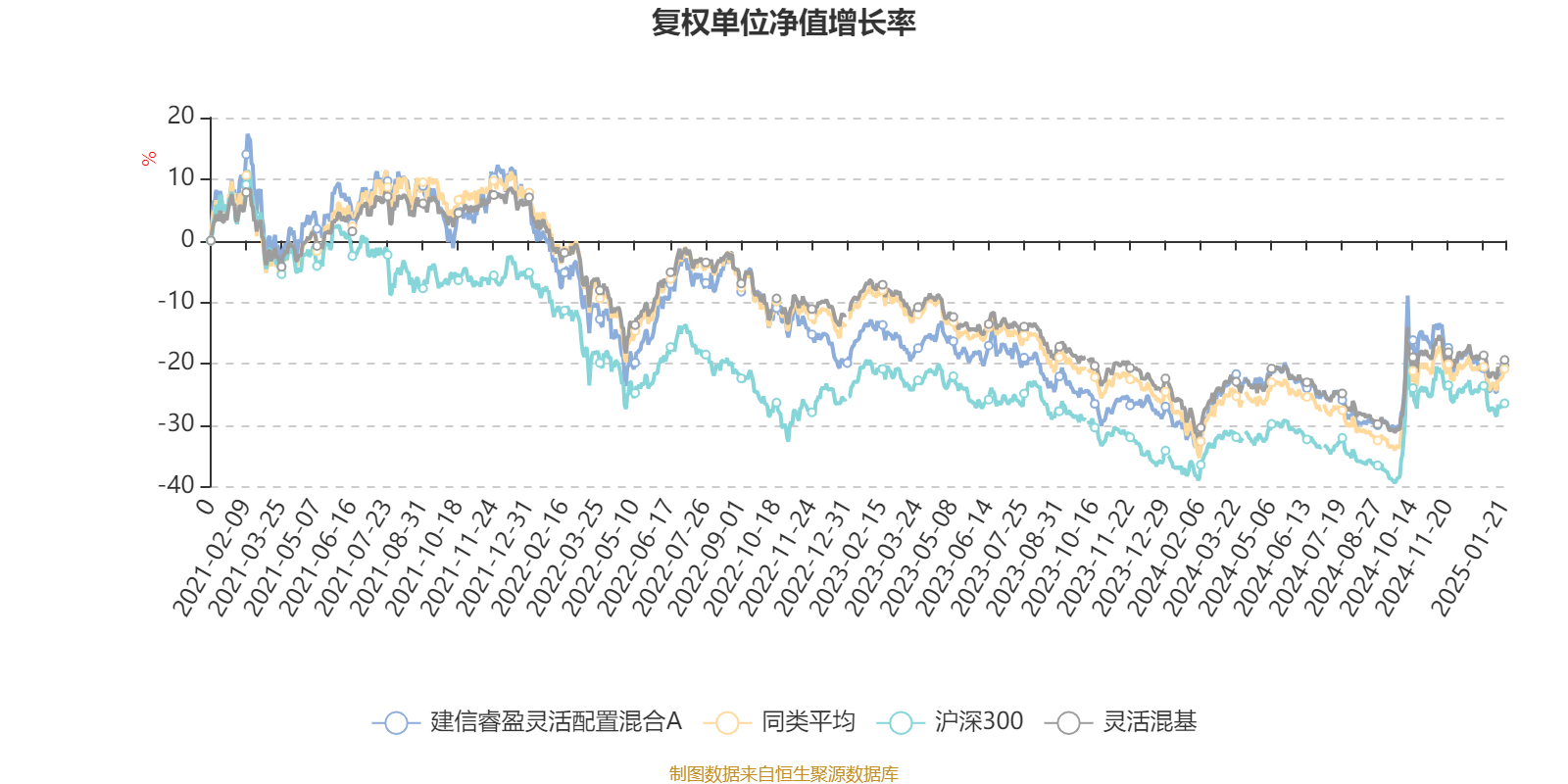 截至1月21日,建信睿盈灵活配置混合A近三个月复权单位净值增长率为-6.14%,位于同类可比基金842/920;近半年复权单位净值增长率为7.54%,位于同类可比基金482/920;近一年复权单位净值增长率为14.95%,位于同类可比基金329/920;近三年复权单位净值增长率为-20.00%,位于同类可比基金388/898。
