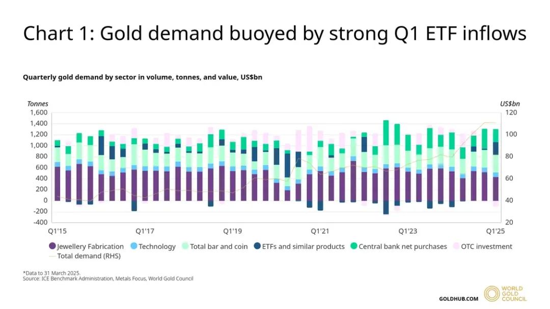 4月30日,世界黄金协会(WGC)发布了2025年第一季度《全球黄金需求趋势报告》。