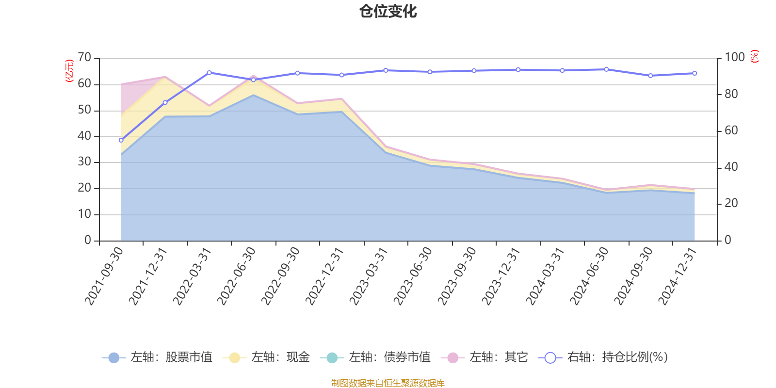 据定期报告数据统计,近三年平均股票仓位为92.09%,同类平均为85.62%。2024年上半年末基金达到93.9%的最高仓位,2021年三季度末最低,为55.09%。